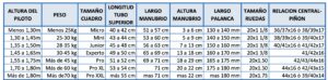 Las bielas varían en longitud según las medidas de las piernas del ciclista, desde la entrepierna hasta los tobillos, para asegurar un ajuste adecuado y confortable.