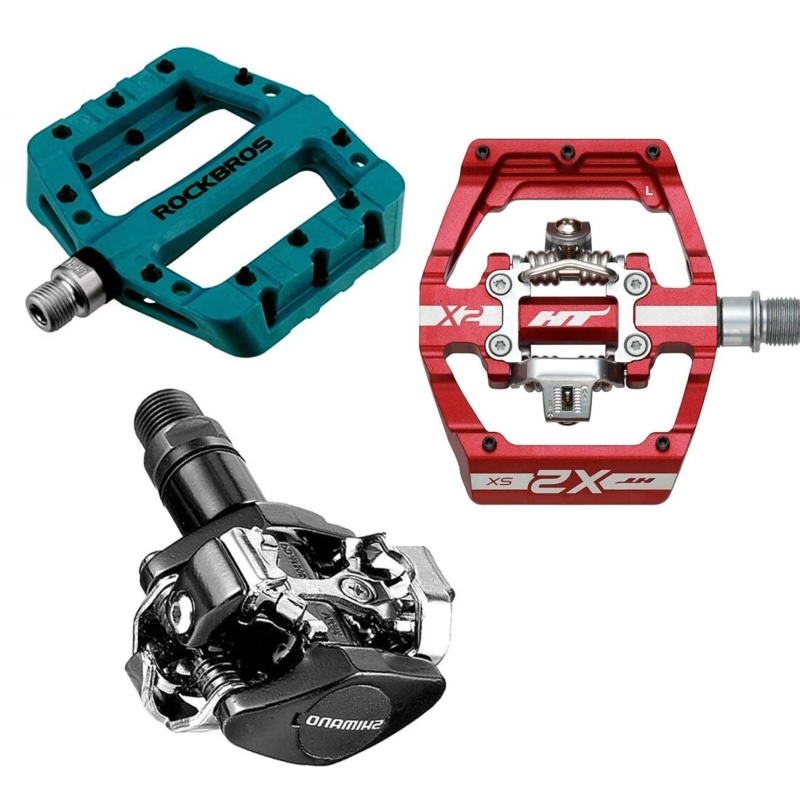 Hay una amplia gama de pedales disponibles, incluyendo los de plataforma, fijación y mixtos.