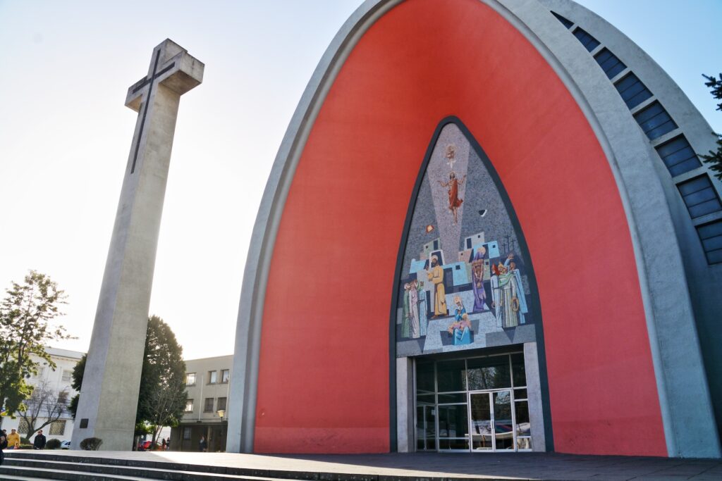 La Catedral de Chillán, que se ha convertido en el símbolo de la ciudad y postal histórica de todo visitante. Se construyó en 1941 por Hernán Larraín Errázuriz, siendo declarada Monumento Nacional Histórico el año 2014. Enorme bóveda formada por una sucesión de arcos parabólicos separados entre sí, permitiendo el ingreso de luz natural. Sobre la puerta principal, se encuentra un mosaico, realizado por el artista Rubio Dalmati.
